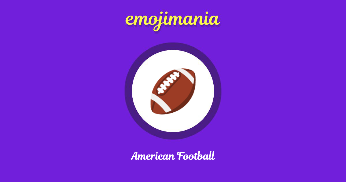 The alternative names of ๐ American Football emoji are American, Ball, Football, Super Bowl.