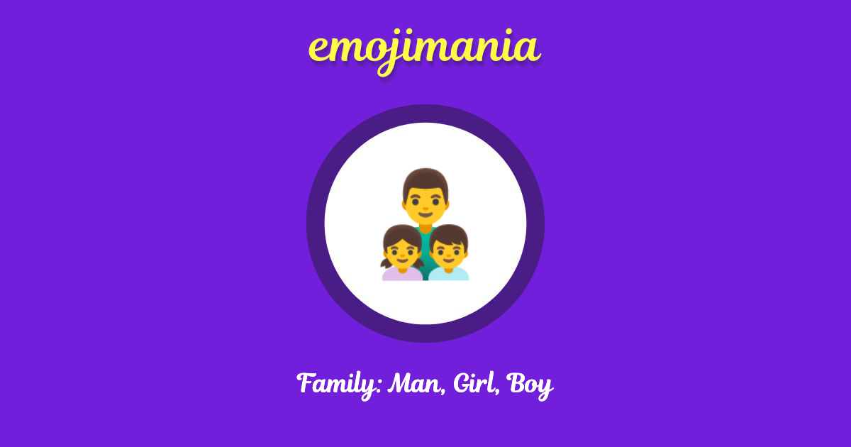 The alternative names of ๐จโ๐งโ๐ฆ Family: Man, Girl, Boy emoji are Boy, Family, Girl, Man.